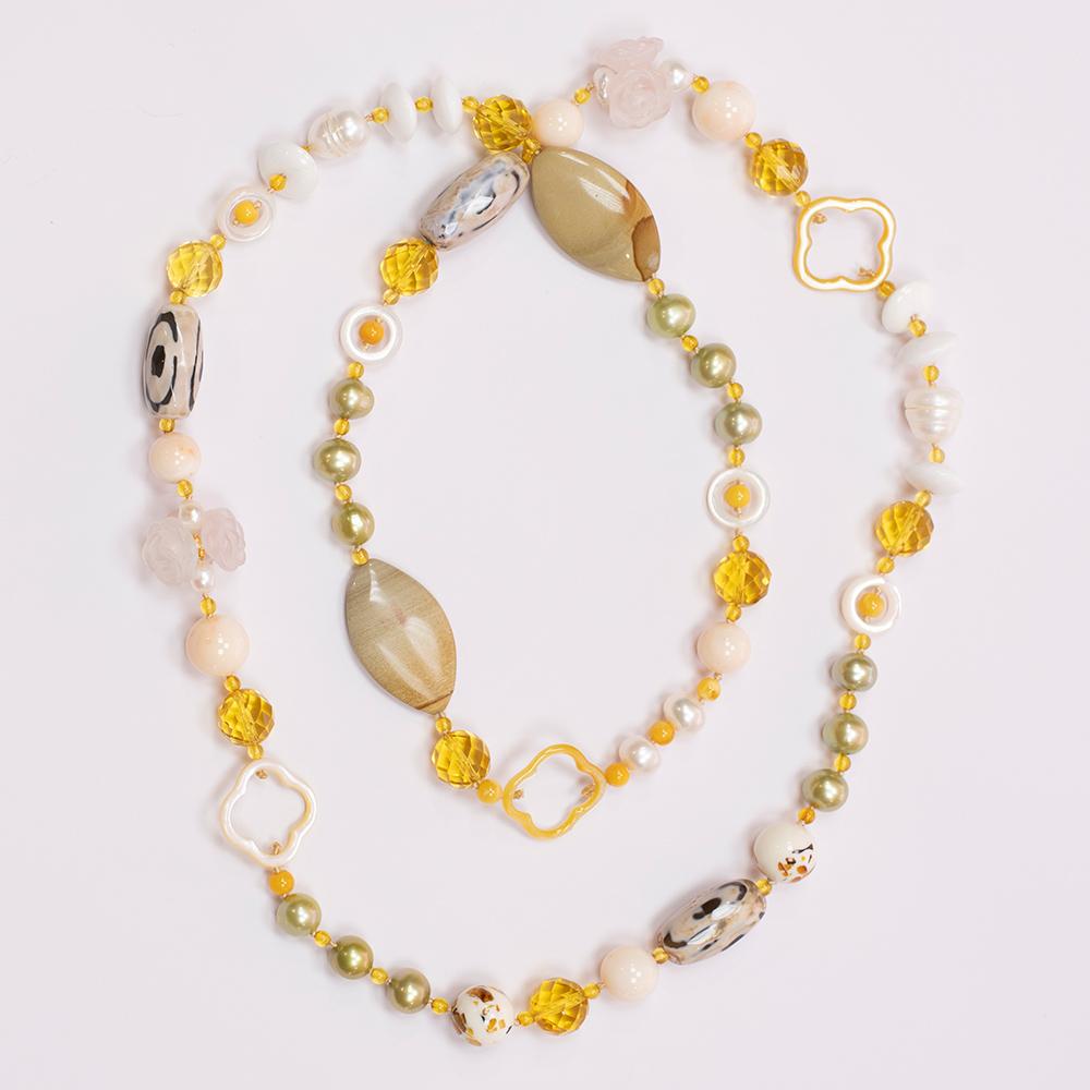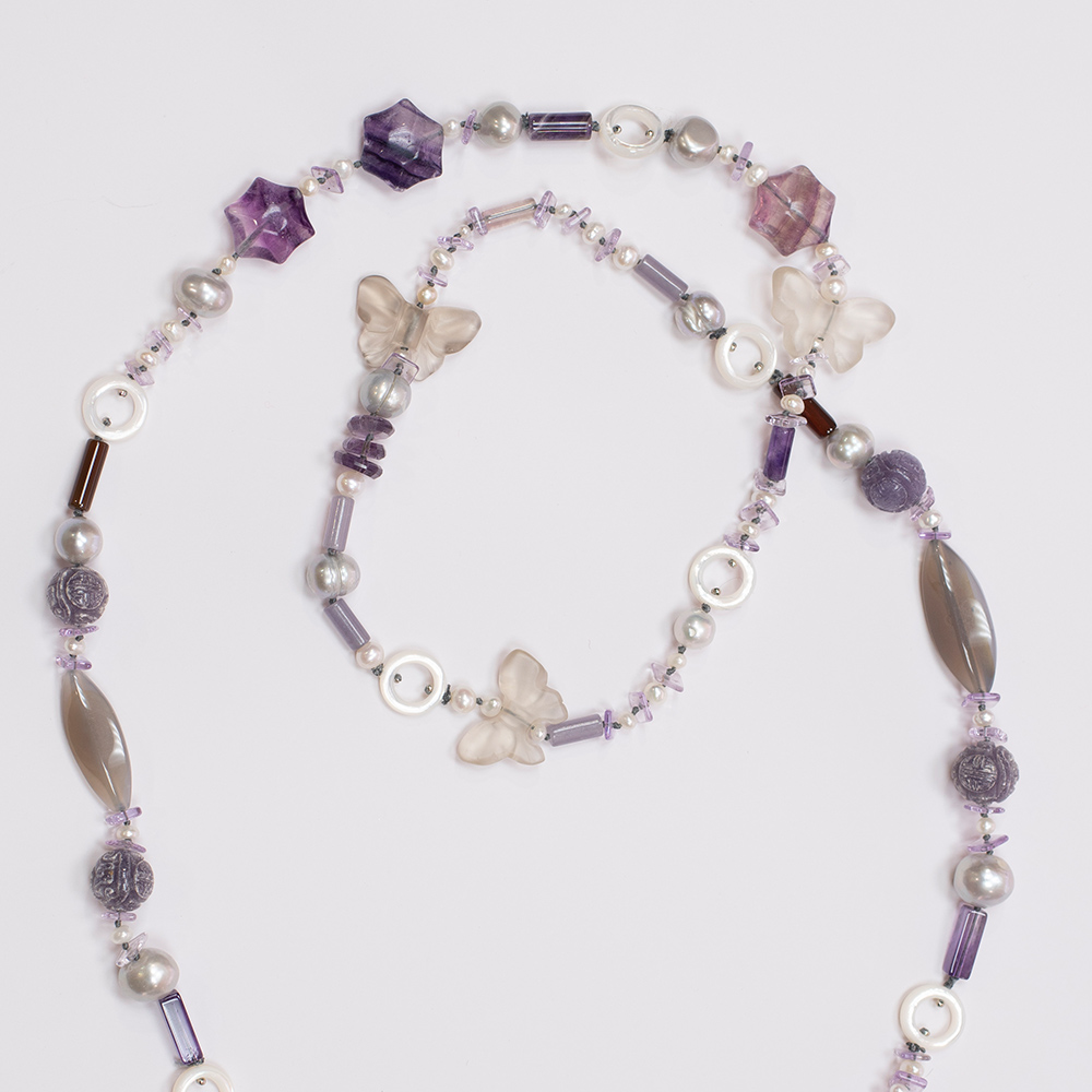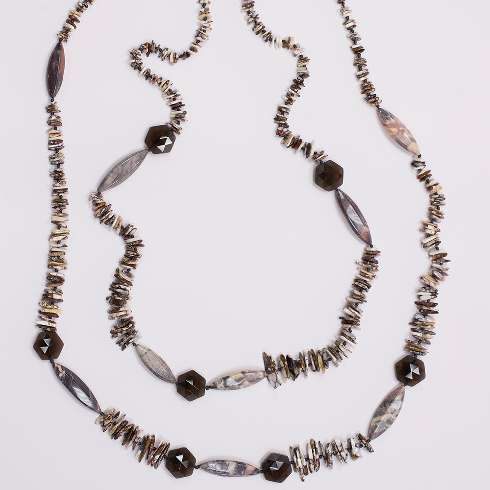 スモーキークオーツ、ローズクオーツ、パール、オイスターシェルクオーツ